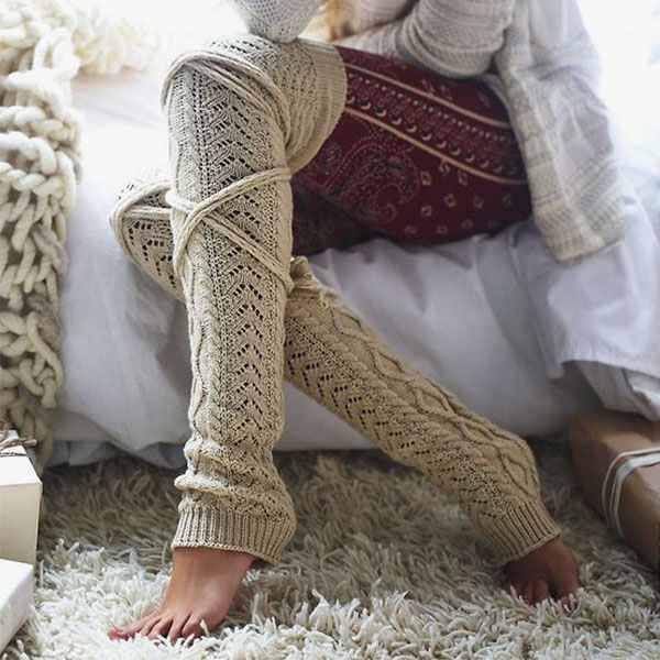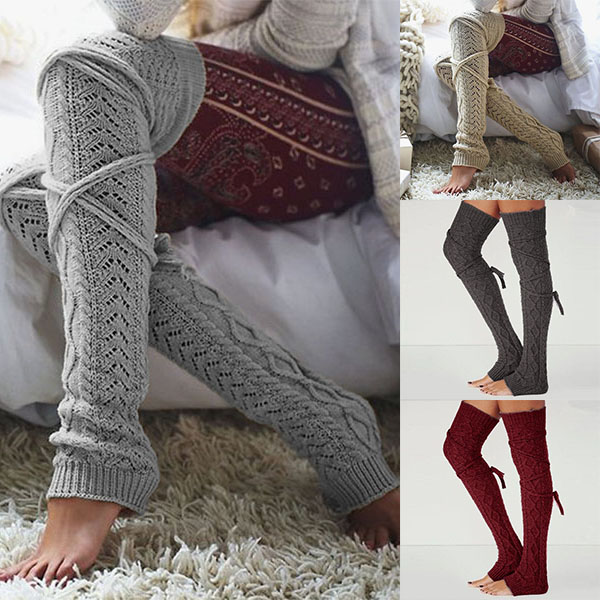 Enfärgad design, tillverkad av mjukt och mysigt stickat material, detta par lårhöga strumpor håller dig inte bara varm,