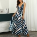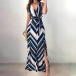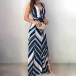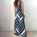 Fashion Backless V-neck Slit Hem Sleeveless Striped Dress