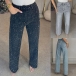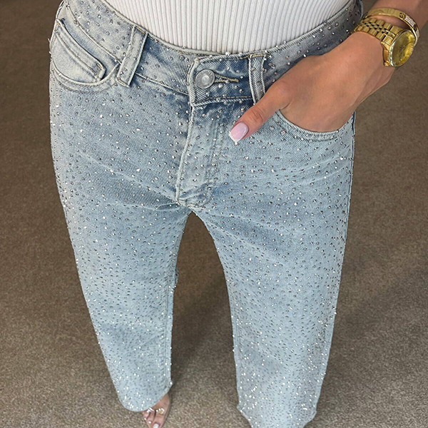 Jeans med bling och strassdetaljer, hög midja och raka ben