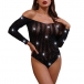 Bodysuit med bling-effekt, axellös långärmad modell, öppen rygg och halvknäppning