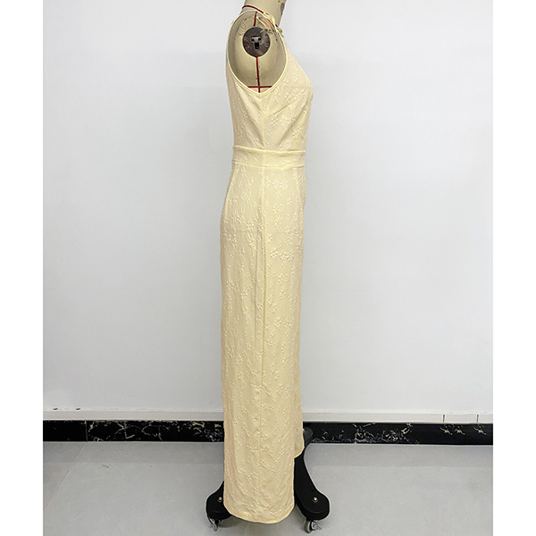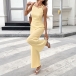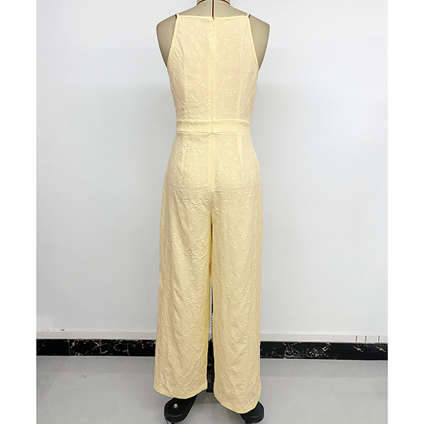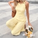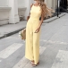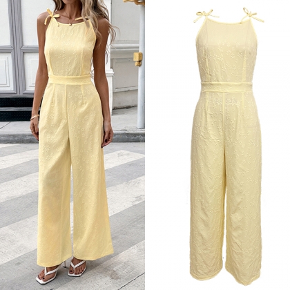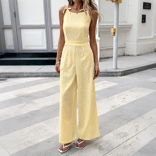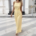 Trendigt jumpsuit med rosettknut, fyrkantig halsringning, hög midja och rak passform