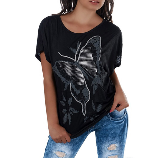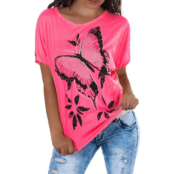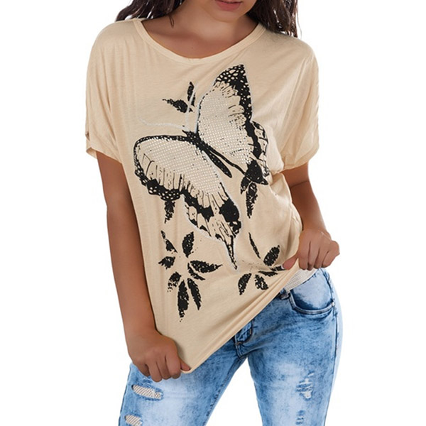 Your casual days call for such a simple,cozy and stylish t-shirt. Crafted from soft and breathable fabric,with short sleeve,round neck design,this piece is sure to offer you a comfortable day. The butterfly printed pattern design will add some charm. Perfect fit for matching with different style bottoms.
