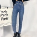 Dessa jeans har hög midja som framhäver dina kurvor och förlänger benen för en smickrande siluett. Knappdetaljerna tillför en trendig och elegant touch, vilket gör dem till ett mångsidigt och moderiktigt plagg för din garderob. Matcha med en instoppad blus eller t-shirt och sneakers för en avslappnad och cool look.