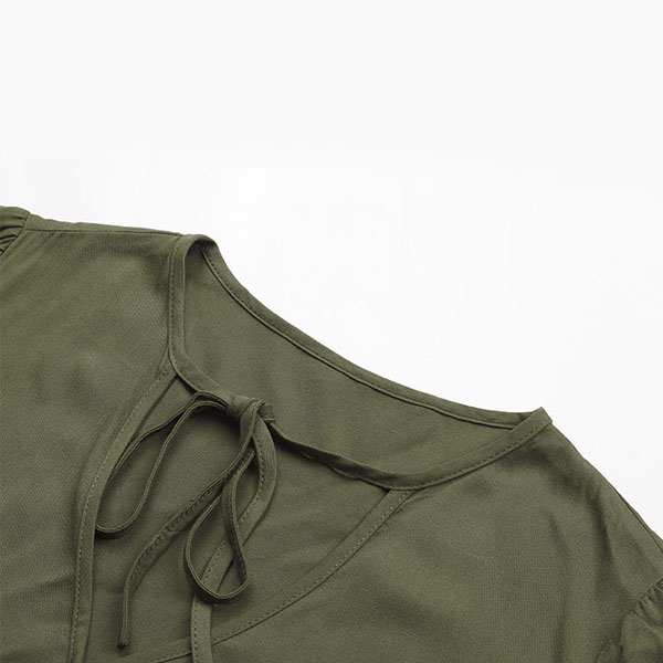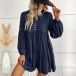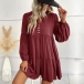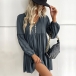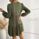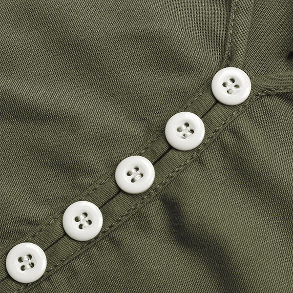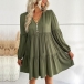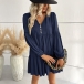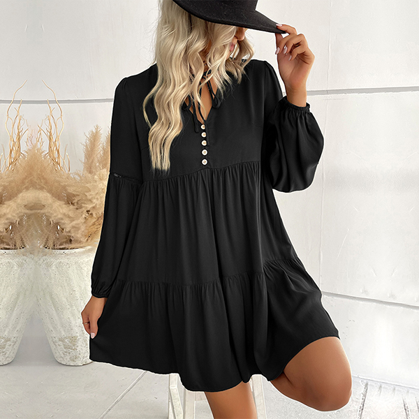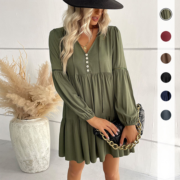 Damklänning med V-ringning, lång ärm, knapprad och lager-på-lager