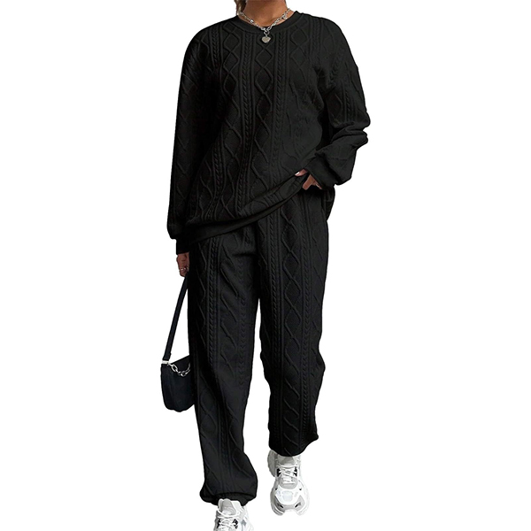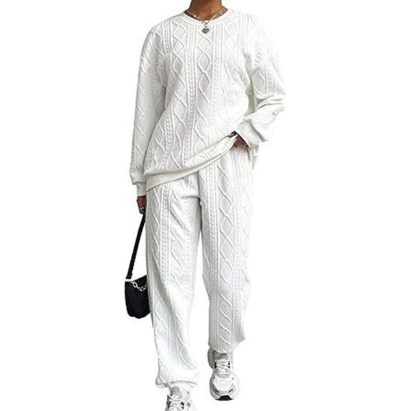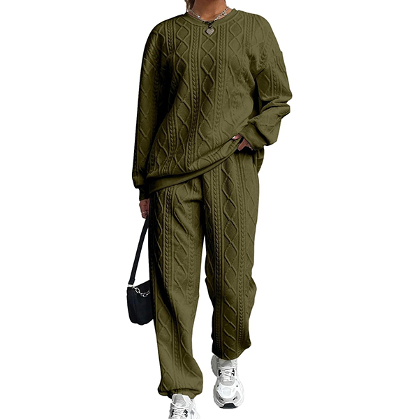 Detta koordinerade stickade set kombinerar en lyxig kabelstickad tröja med matchande byxor i en mjuk, stretchig viskos- och akrylblandning som andas, håller värmen och tål maskintvätt utan att tappa formen. Det intrikata kabelmönstret ger en unik hantverkskänsla som skiljer setet från massproducerade plagg, medan den noggrant utformade passformen smickrar silhuetten och erbjuder full rörelsefrihet. Perfekt för hemmakontor, stadspromenader och avslappnade loungekvällar – med flera trendiga färgalternativ är det enkelt att mixa och matcha för en koordinerad, tidlös look som är lika bekväm som elegant.