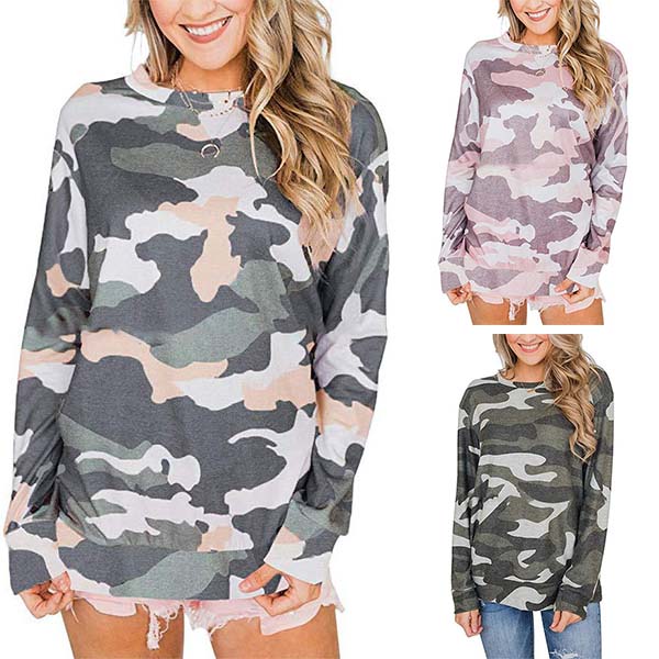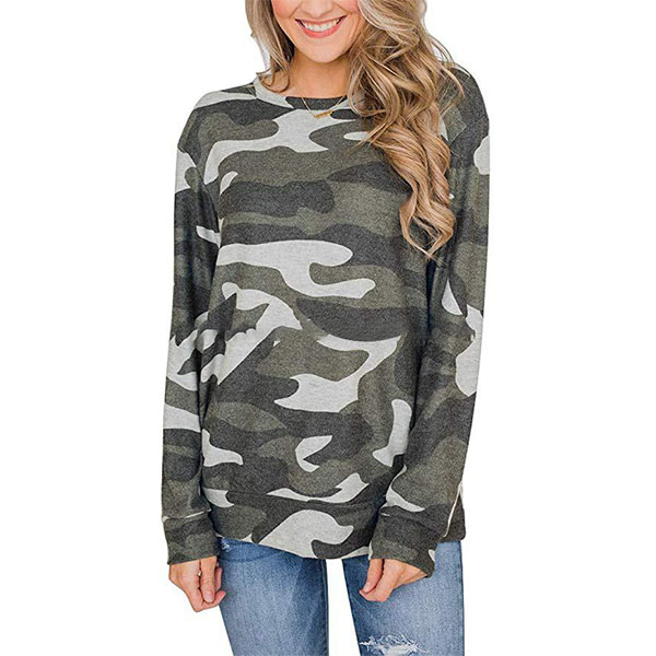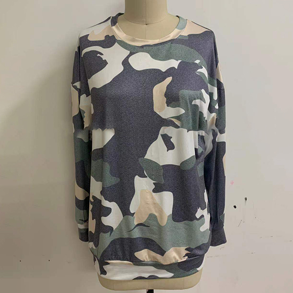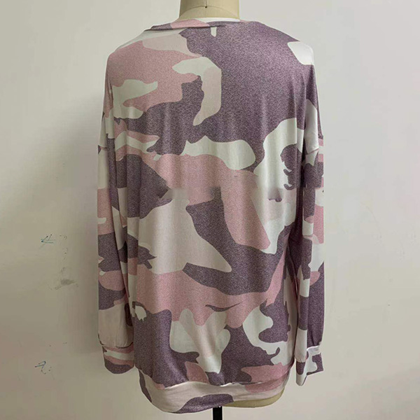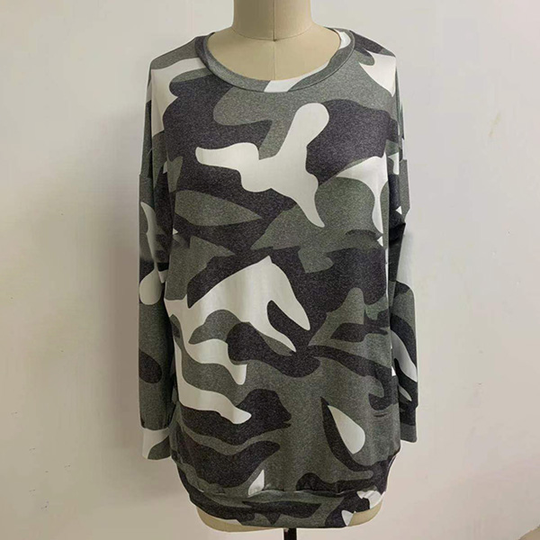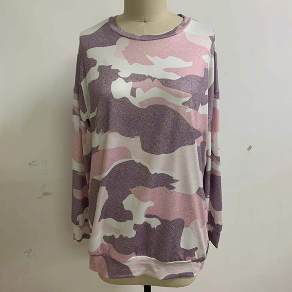 Fashion Camouflage Printed Long Sleeve Round Neck Sweatshirt