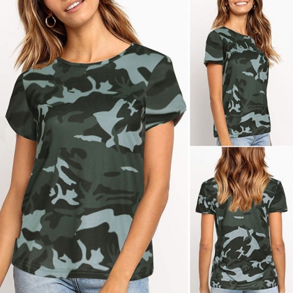 Fashion Camouflage Printed Short Sleeve Round Neck T-shirt