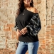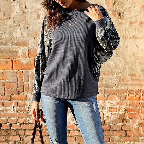 For these spring and autumn days,this chic sweatshirt can easily strike your mind. The camouflage printed spliced details not only enriches the design style,but also boosts its entire charm. You can simply matching with a skinny jeans to finish a laid-back and fashionable style.