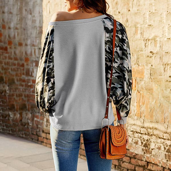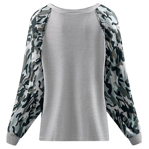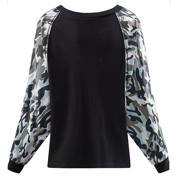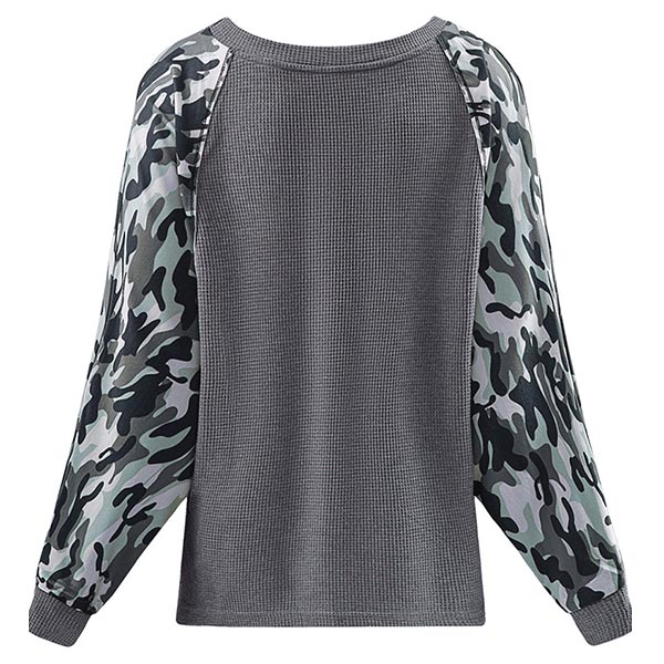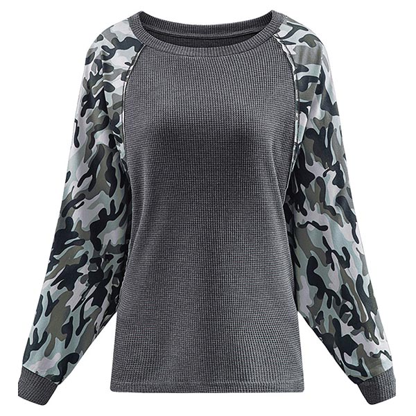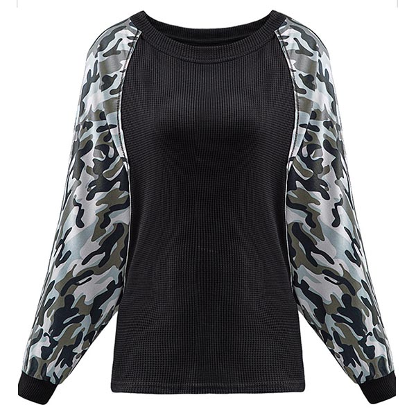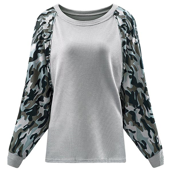 Fashion Camouflage Printed Spliced Long Sleeve Round Neck Sweatshirt