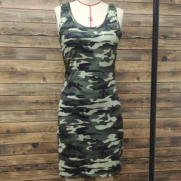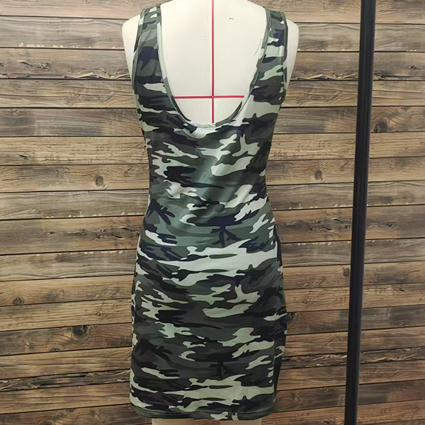 Kamouflage-Mönstrad Bodycon Klänning med Fyrkantig Hals och Ärmlös Design