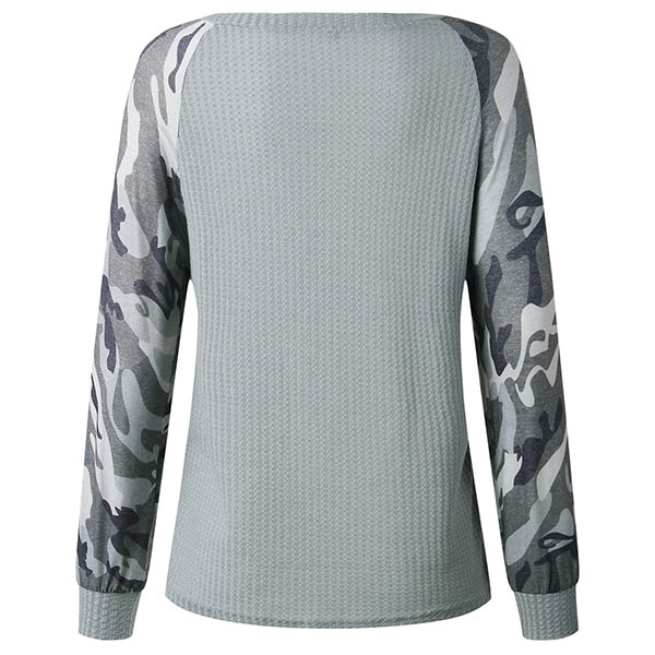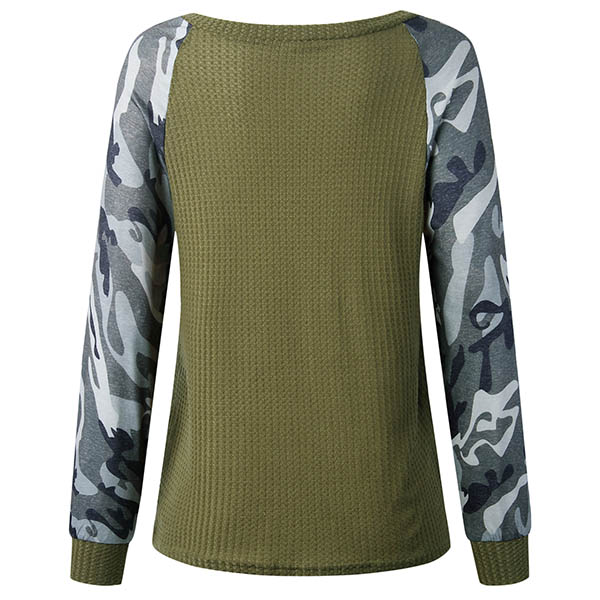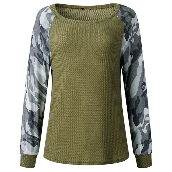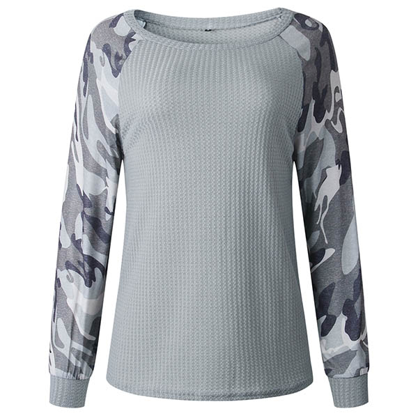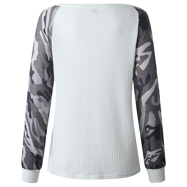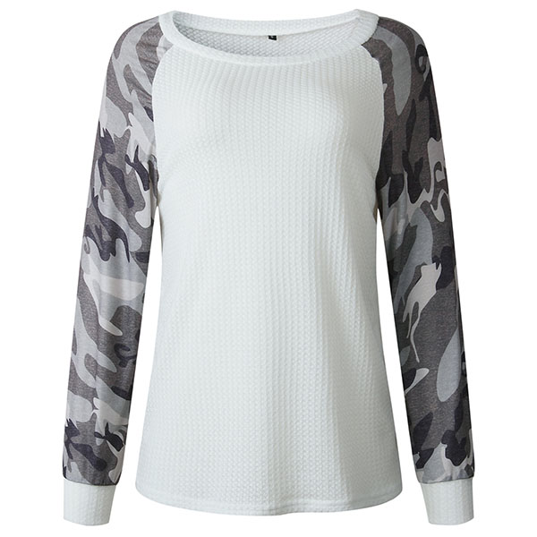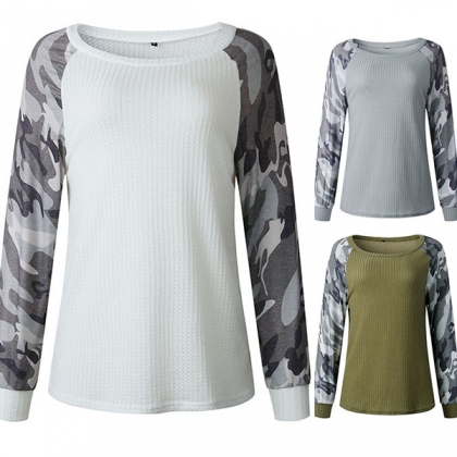 Fashion Camouflage Spliced Long Sleeve Round Neck T-shirt