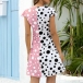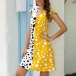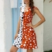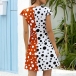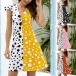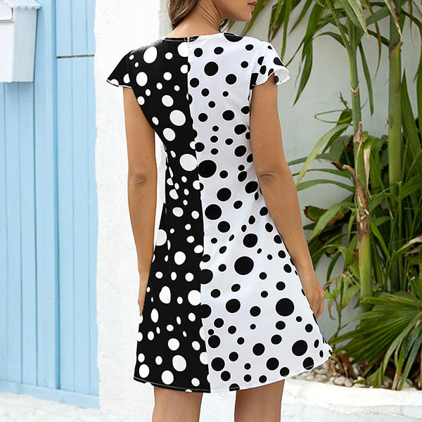 Fashion Cap Sleeve V-neck Contrast Color Dots Printed Dress