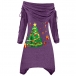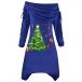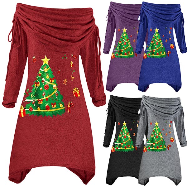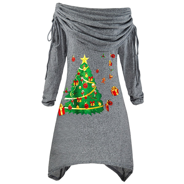 Fashion Christmas Tree Printed Long Sleeve Cowl Neck Irregular Hem Dress