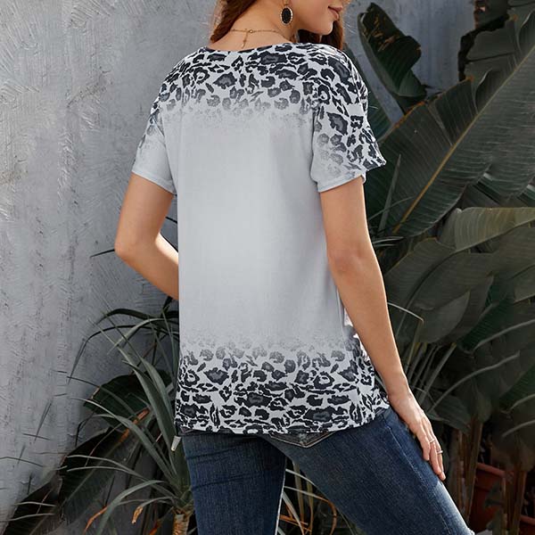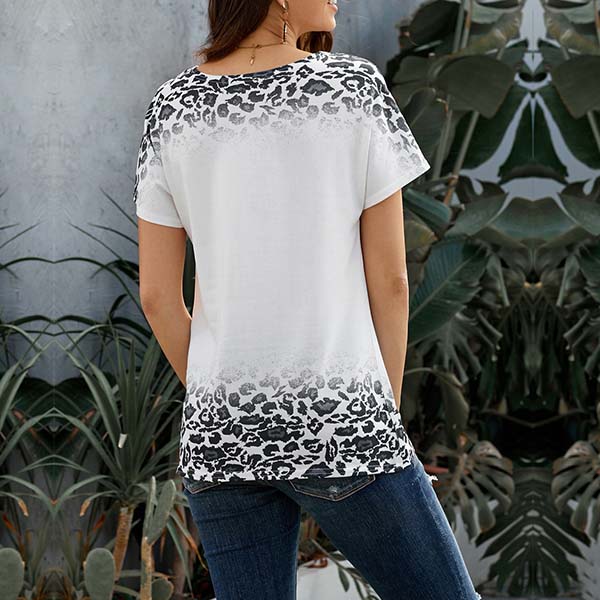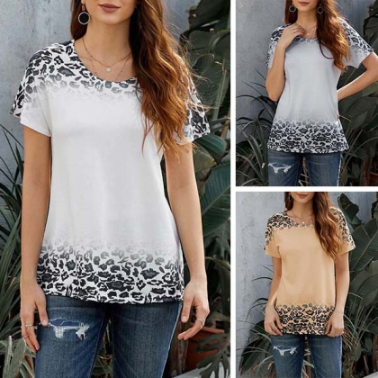 Fashion Color Gradient Leopard Printed Short Sleeve T-shirt