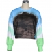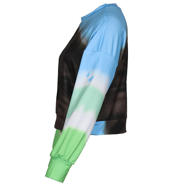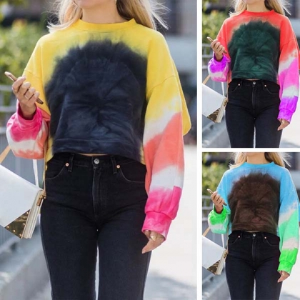 When strolling on the street with this sweatshirt,you can easily win more eyes. The color gradient design makes this piece look so stylish and distinctive. Finished with long sleeve and round neck design,this piece can offer you a comfortable day with its soft and breathable fabric. Matching with your high waist bottom would be a good idea.