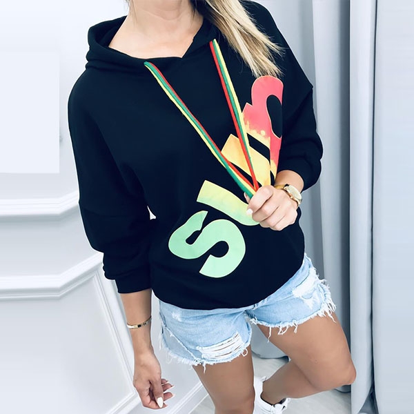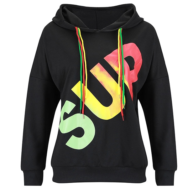 Shake off your ordinary with this hoodie. The colorful letters printed details and colorful drawstring