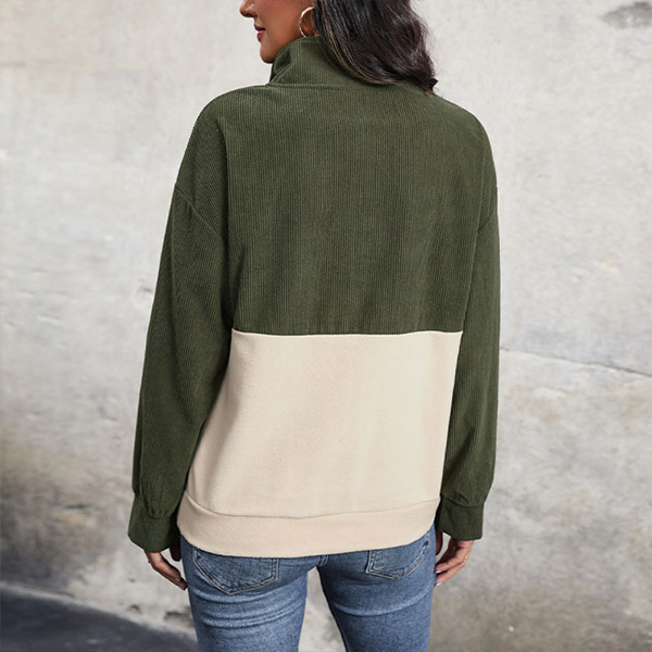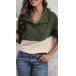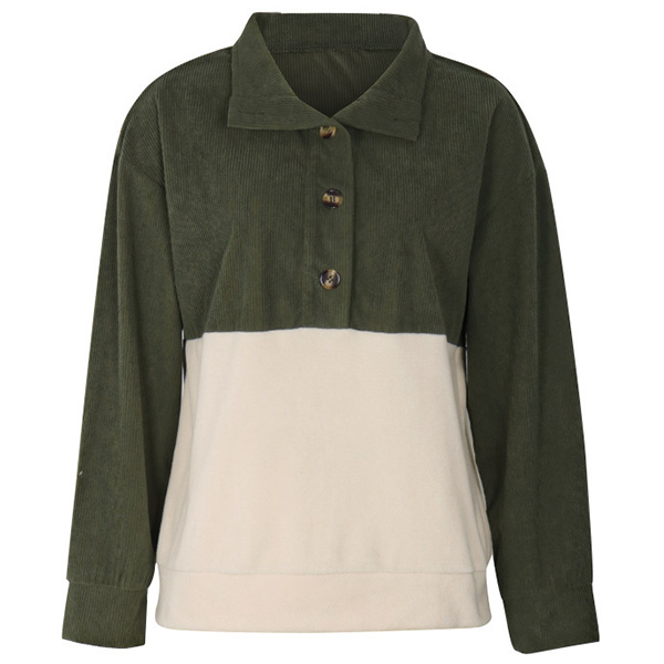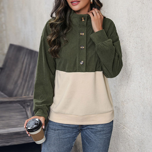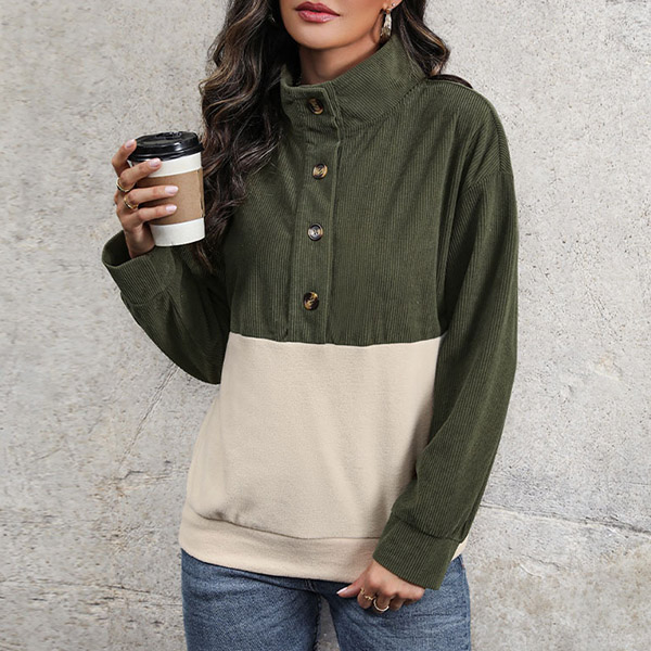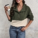 Modekontrastfärgad långärmad skjorta med knappstativkrage