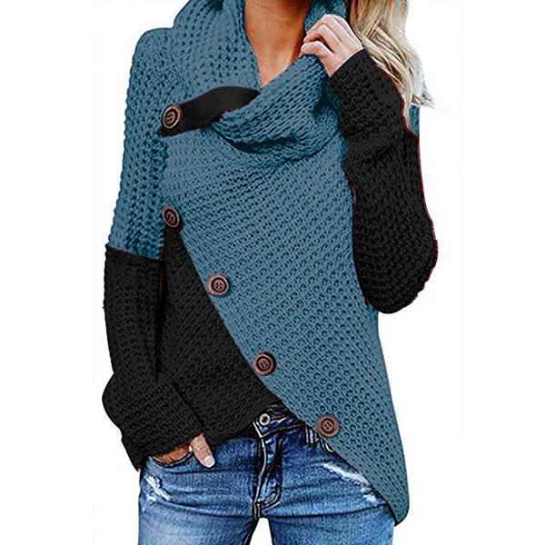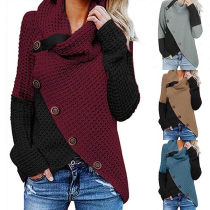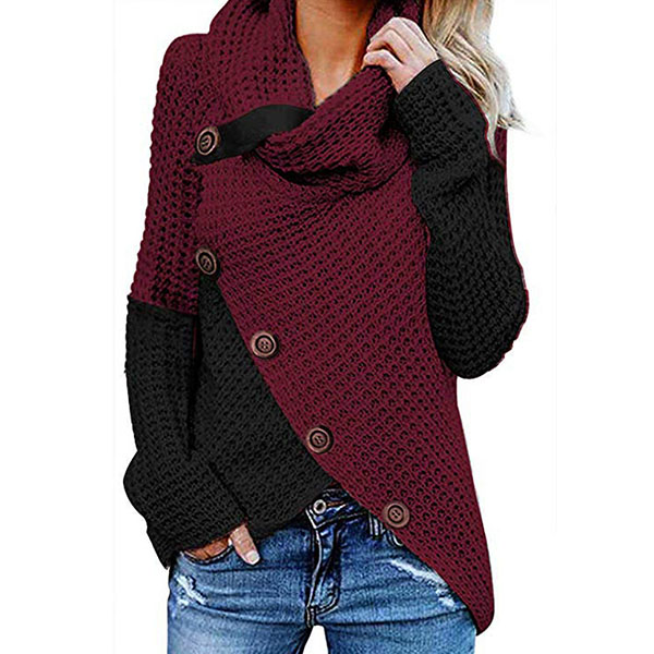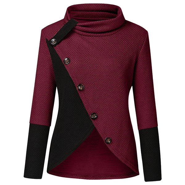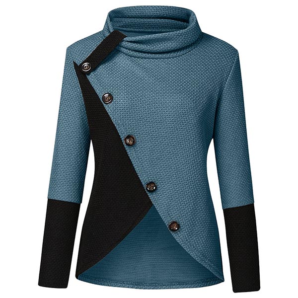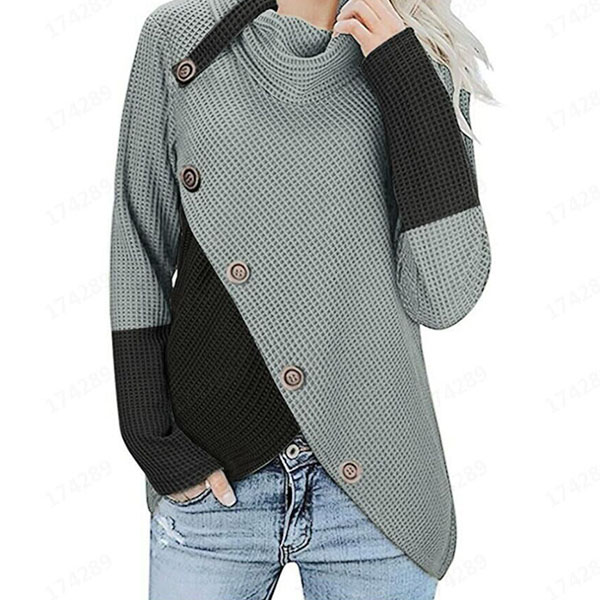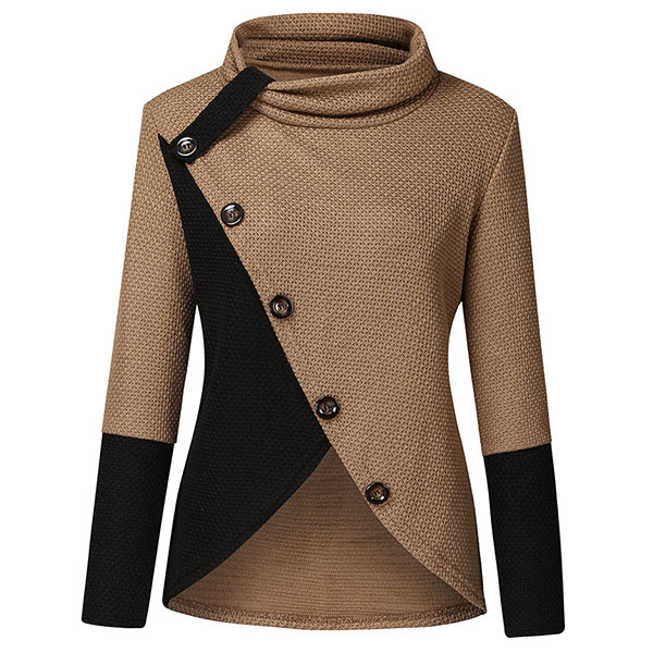 Hej tjejer, ni behöver en chic och unik topp för att höja er stil. Kontrastfärgad design, halsringning, oregelbunden fåll och framknappsdetaljer gör detta plagg distinkt. Håll dig varm och stilfull med denna pärla.