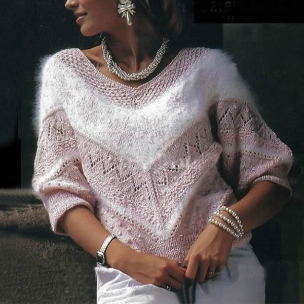 In these early autumn days,this knit top can be your wise choice. Contrast color style,finished with dolman sleeve and v-neck design,this wonderful top can exude your chic and stylish personality. Matching with a tight pants would offer you a fashionable look.