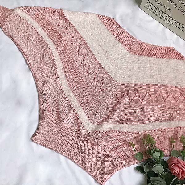 Fashion Contrast Color Dolman Sleeve V-neck Knit Top