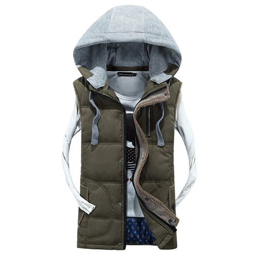 You can't go without this vest in your closet. Contrast color style,completed with a detachable hood,