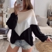 Fashion Contrast Color Lantern Sleeve Round Neck Loose T-shirt