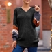 When the weather gets drop,it is time for you to invite this sweater to your wardrobe! Contrast color design makes it look not so dull,while the lantern sleeve and v-neck design will enhance its charm. You can trust in this sweater to keep you warm while it exudes your style.