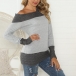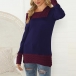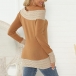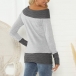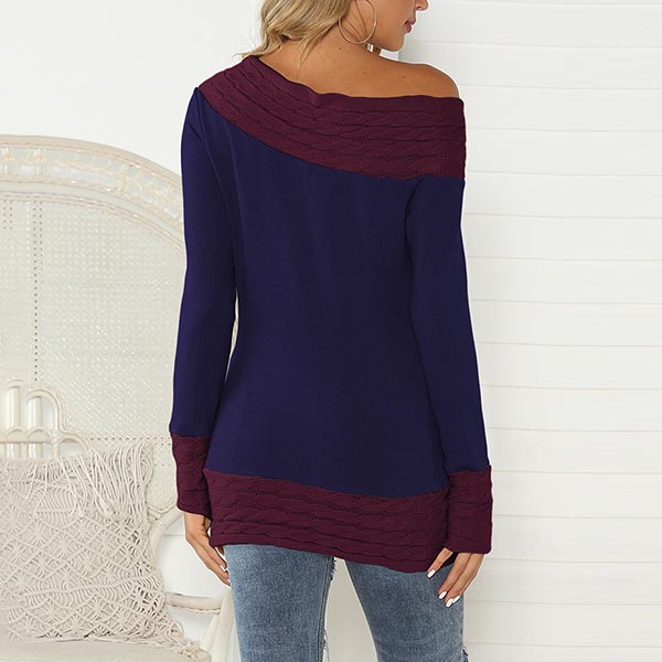 Fashion Contrast Color Long Sleeve Asymmetric V-neck T-shirt