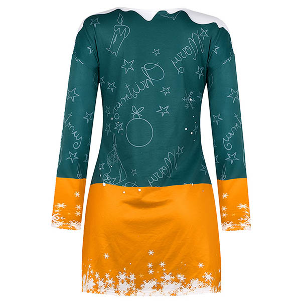 Fashion Contrast Color Long Sleeve Christmas Printed Dress