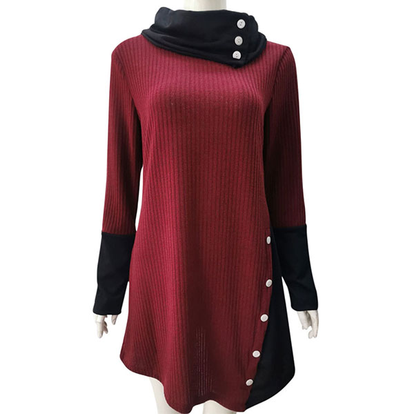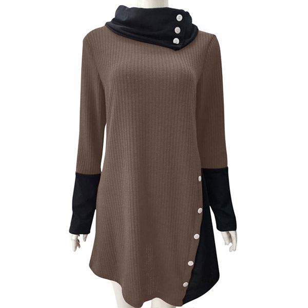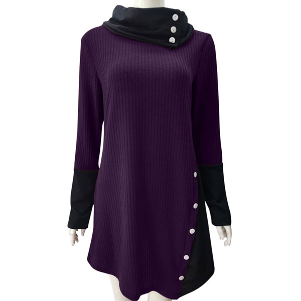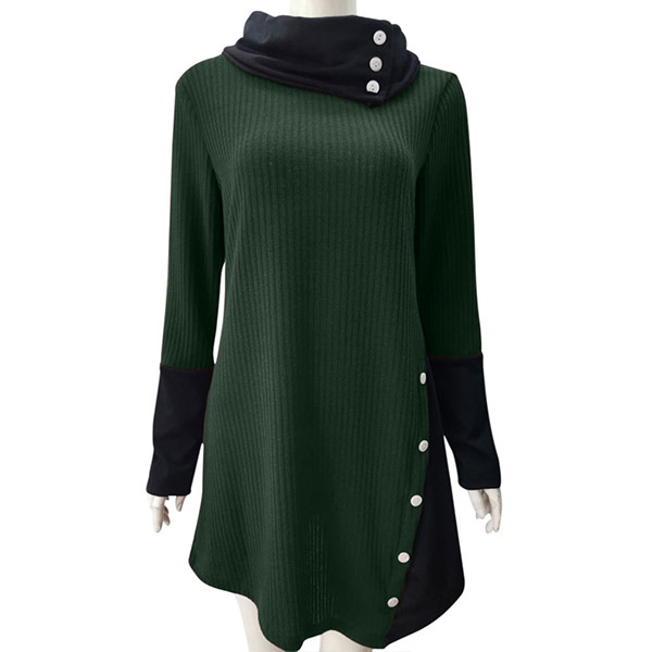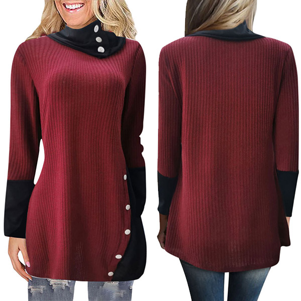 You can trust in this wonderful top to update your daily style. Contrast color style,the unique cowl neck and side-button design make this piece look more attractive,while its soft,breathable fabric can ensure you a comfortable day. When the days get a little cold,you can make your eyes focused on this long sleeve top.
