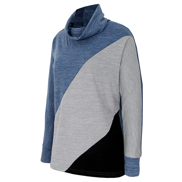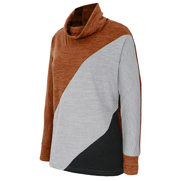 Fashion Contrast Color Long Sleeve Cowl Neck T-shirt
