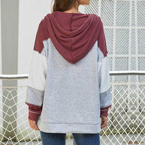 Contrast color design makes this piece look more attractive. Finished with long sleeve,hooded