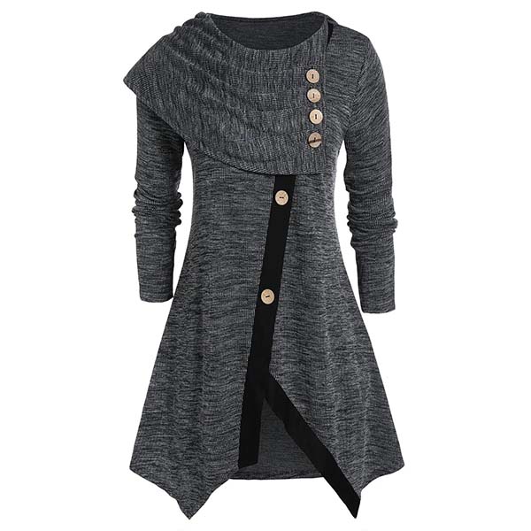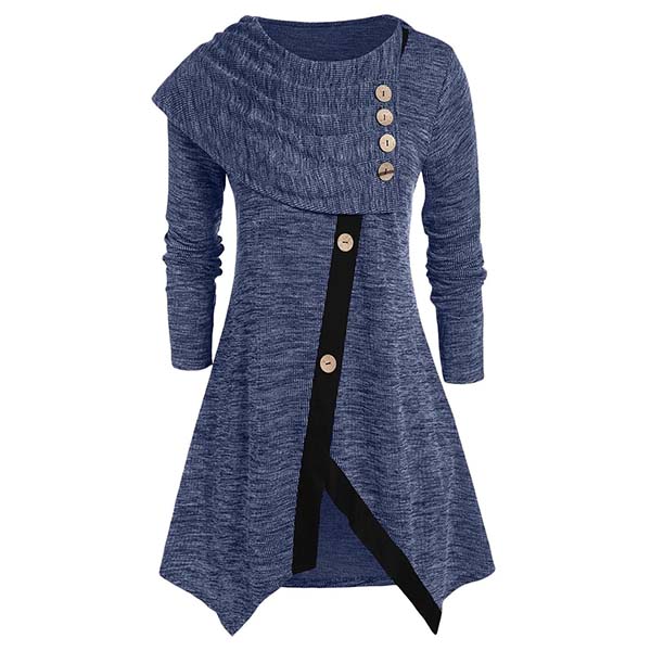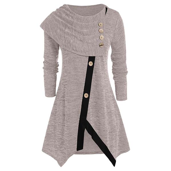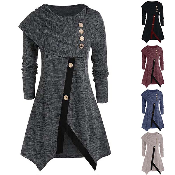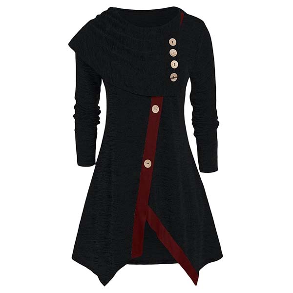 If there is one way to instantly give your image a style boost, it is by introducing this dress into your ensemble. Contrast color style,the unique collar and irregular hem design make this piece look so distinctive and attractive. So why not have a try it to boost your charm?
