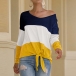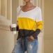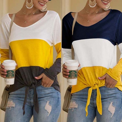 Fashion Contrast Color Long Sleeve Knotted Hem T-shirt