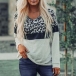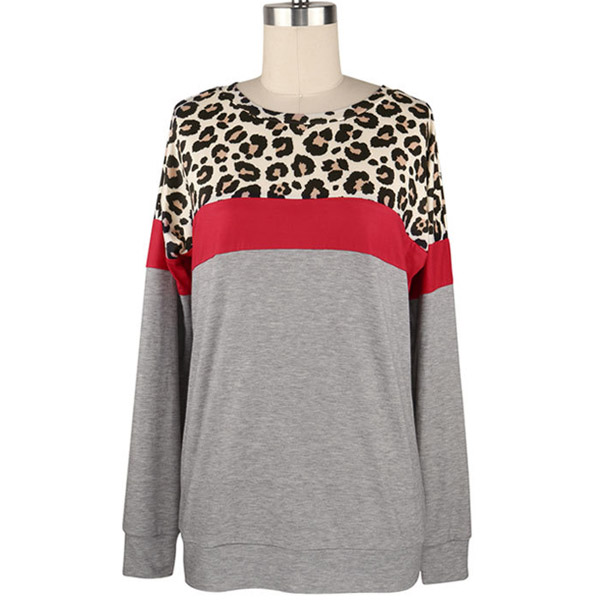 Fashion Contrast Color Long Sleeve Leopard Printed Spliced Sweatshirt