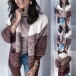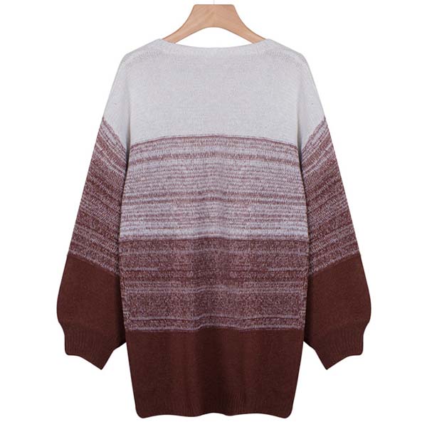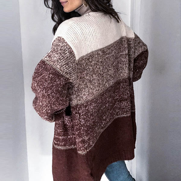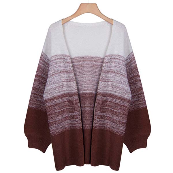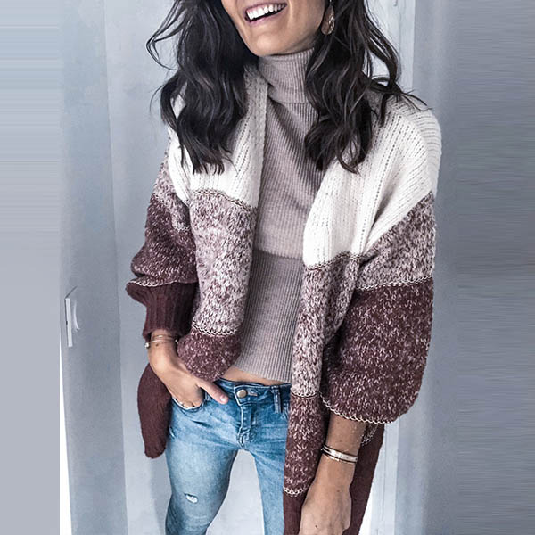 Fashion Contrast Color Long Sleeve Loose Knit Cardigan