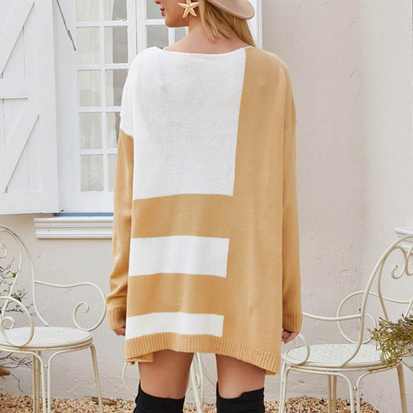 Fashion Contrast Color Long Sleeve Loose Knit Thin Cardigan