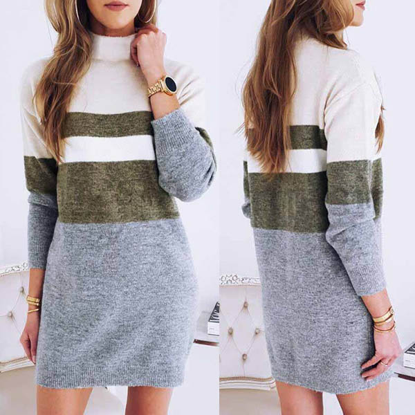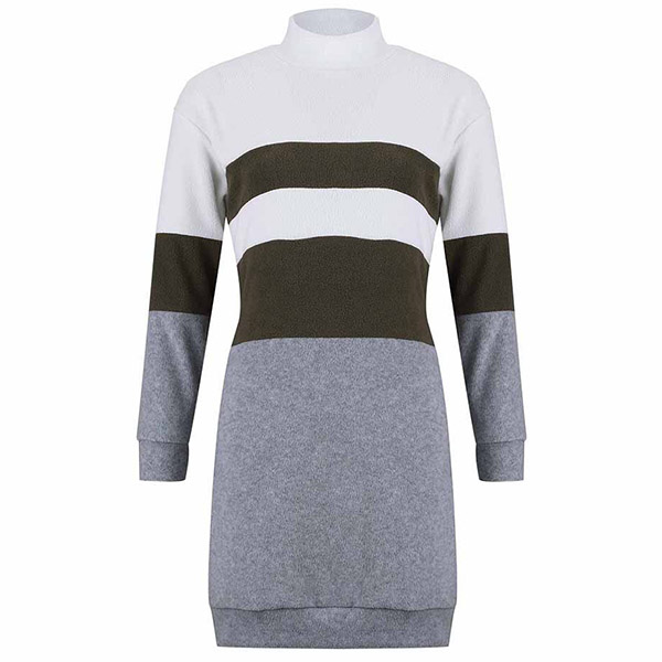 For these spring and autumn days,this long sleeve dress is worth to be your new darling. Contrast color style,finished with long sleeve,mock neck and a clean silhouette,this piece definitely knows how to give you a warm day as well as stylish look. You can match it with your favourite shoes to enjoy your wonderful day!