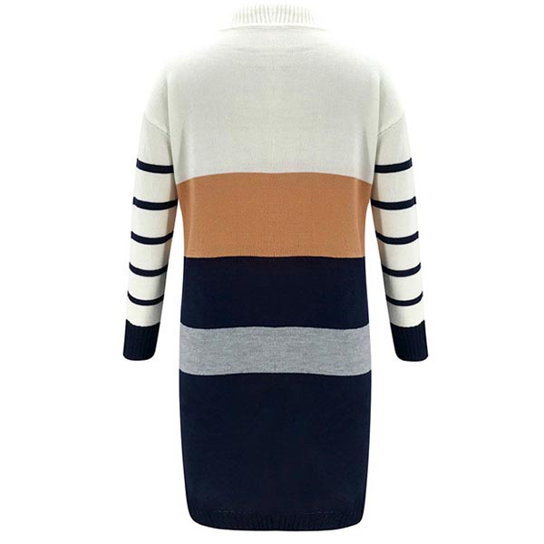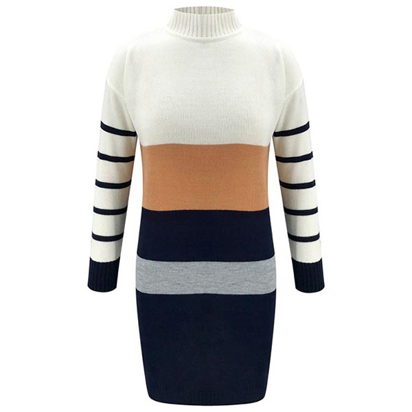 This cozy yet stylish sweater is worth to be a wardrobe staple when the days get cold. Contrast color design makes it look more stylish and attractive. Finished with long sleeve,mock neck and a fit silhouette,this sweater dress can keep you warm as well as offer you different matching styles.