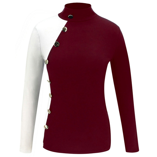 Fashion Contrast Color Long Sleeve Mock Neck Slim Fit Top(It falls small)