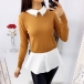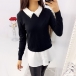 Fashion Contrast Color Long Sleeve Mock Two-piece Top