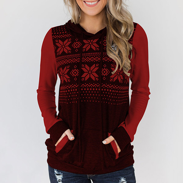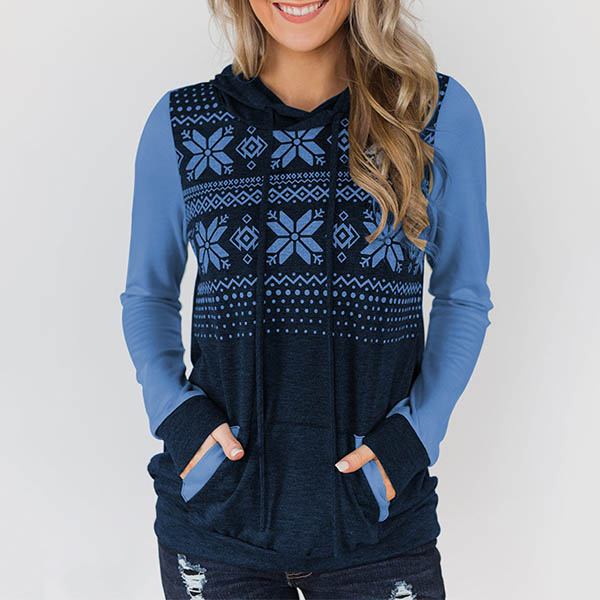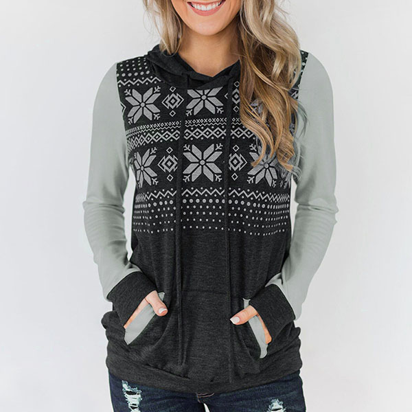 Fashion Contrast Color Long Sleeve Printed Hoodie