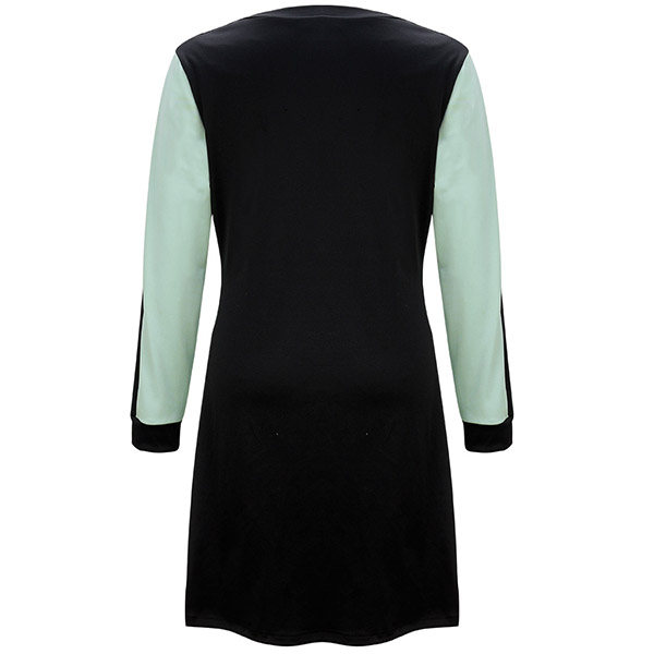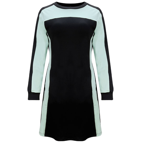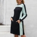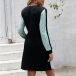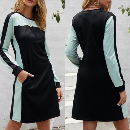 Fashion Contrast Color Long Sleeve Round Neck Dress
