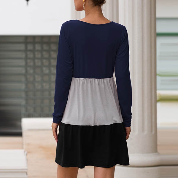 exquisite dress! Contrast color style,finished with long sleeve and round neck design,this dress knows