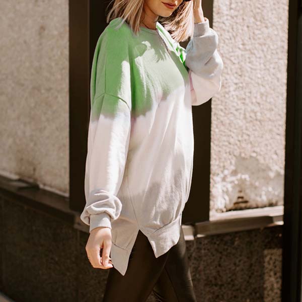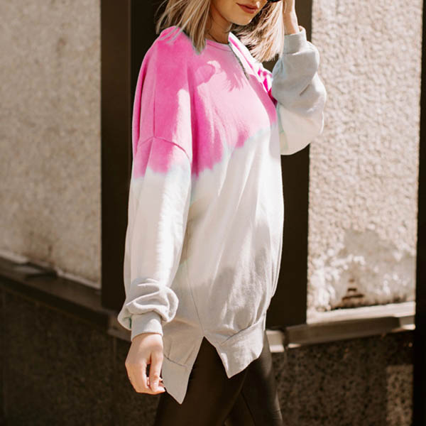 Fashion Contrast Color Long Sleeve Round Neck High-low Hem Sweatshirt