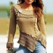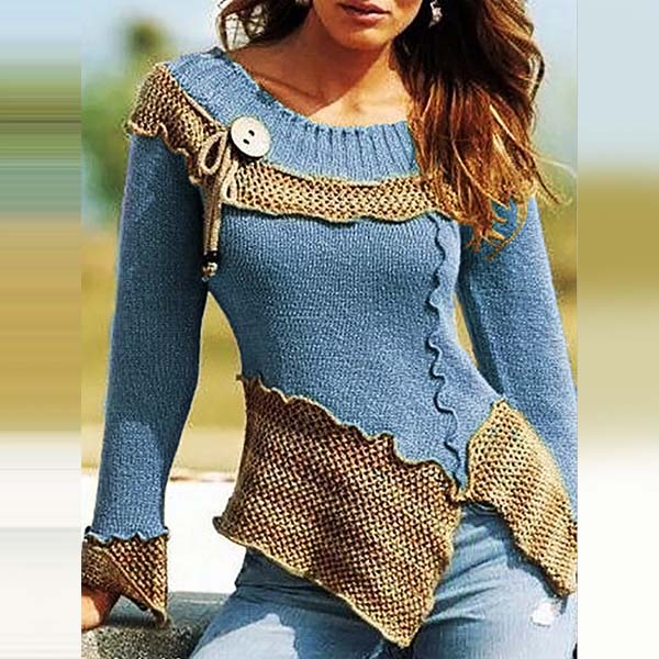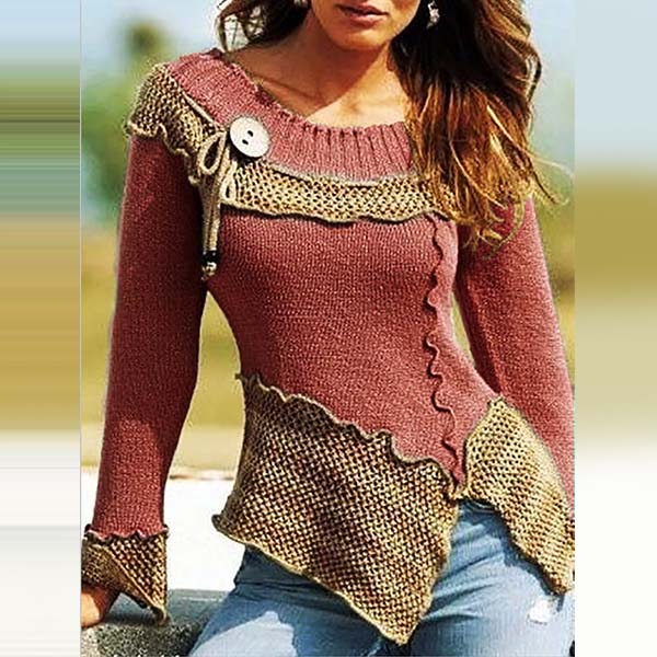 Fashion Contrast Color Long Sleeve Round Neck Irregular Hem Sweater