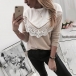 This t-shirt is designed with contrast color element and lace spliced details,which can easily enrich the design style as well as boost its charm. On the other hand,its soft and breathable fabric can ensure you a comfortable day. This little piece can offer you different matching styles. So why not buy one?