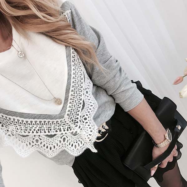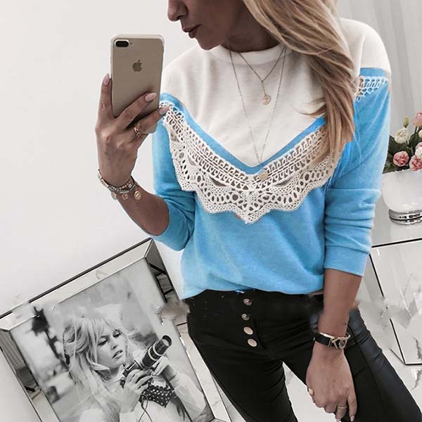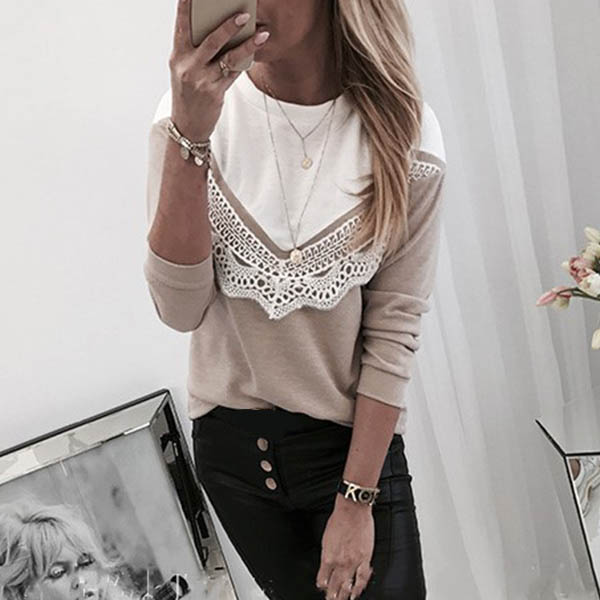 If you have no time for your daily matching,then your wardrobe calls for such a stylish and all-match t-shirt. Contrast color style,the lace spliced design will make it look more attractive. Finished with long sleeve,round neck and soft fabric,this piece knows how to give you a cozy yet stylish style.