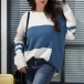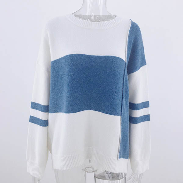 Fashion Contrast Color Long Sleeve Round Neck Loose Sweater