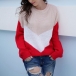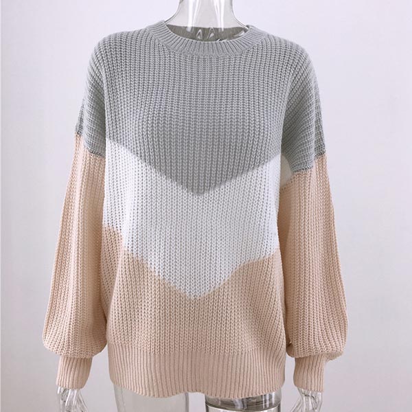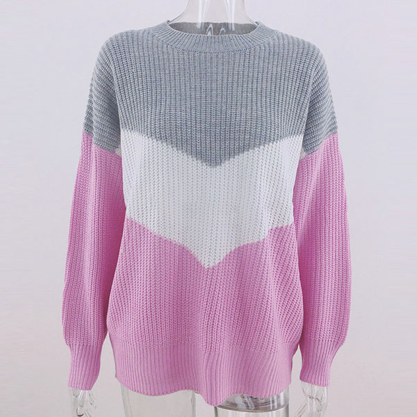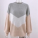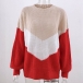 Fashion Contrast Color Long Sleeve Round Neck Loose Sweater